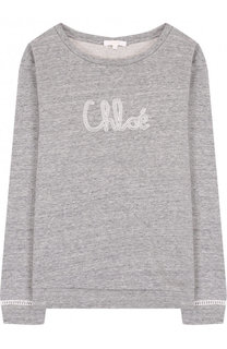 Серый меланжевый свитшот с круглой горловиной изготовлен из тонкого смешанного трикотажа с махровой изнанкой. На груди — светлый вышитый логотип марки, на манжетах длинных рукавов — перфорированные вставки. Состав: Хлопок: 80%; Полиэстер: 20%;