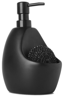 С подставкой для губки. Моющее средство дозируется очень экономно через удобный длинный носик. Губка для мытья посуды входит в комплект. Можно использовать в ванной, залив внутрь мыло, а в держатель положить баночку с кремом для рук, гибкую мочалку и