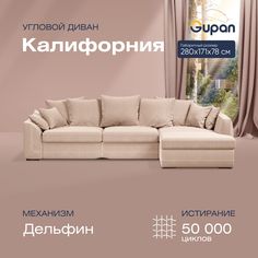 • Угловой диван-кровать Gupan Калифорния Велюр бежевый раскладной дельфин