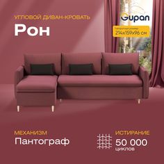 • Угловой диван-кровать Gupan Рон Велюр бордовый раскладной пантограф