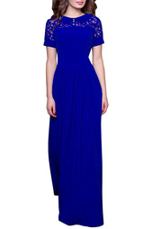 Длинное платье прилегающего силуэта, выполненное из гипюра. Подкладка мягкий трикотаж. Вырез горловины-лодочка. Сзади разрез.