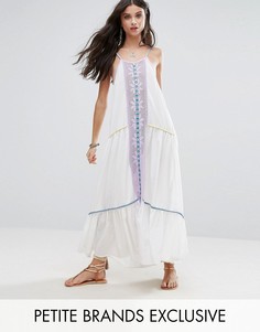 Платье для миниатюрных девушек White Cove Petite, Тканый хлопковый материал, Глубокий вырез, Вышивка спереди, Контрастная окантовка, Бретельки на завязках, Свободный крой - свободная посадка по фигуре, Химическая чистка, 100% полиэстер, Размер на модели...