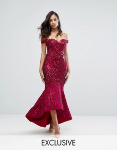 Платье макси Bariano, Гладкая ткань, Открытые плечи, вырез в форме сердца, Удлиненный подол сзади, Застежка-молния, Асимметричный, удлиненный сзади подол, Облегающий крой, Ручная стирка, 95% полиэстер, 5% эластан, Размер на модели: UK 8/EU 36/US 4, рост...