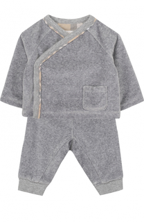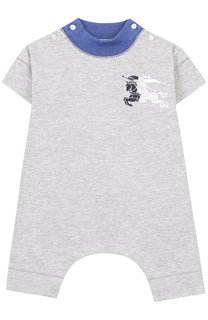 Для пошива серого меланжевого комбинезона мастера марки использовали мягкий хлопковый трикотаж. Круглый вырез дополнен широким кантом из эластичного синего кашкорсе. Благодаря пуговицам на плечах и шаговом шве изделие удобно надевать и снимать. Модель с...