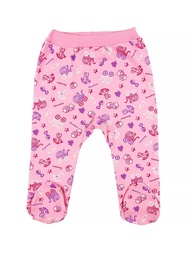 Штанишки ясельные, на широкой резинке, из гладкокрашенного трикотажа, принт на ножке.