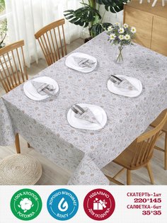 Набор кухонный (скатерть+салфетки) выполнена из 100% хлопковой ткани рогожка — это прочная, слегка грубоватая ткань. Ей характерна ярко выраженная фактура высокой плотности (180 гр/м). Изделие с плетением из рогожки не склонно к деформации. Оно не мнетс...