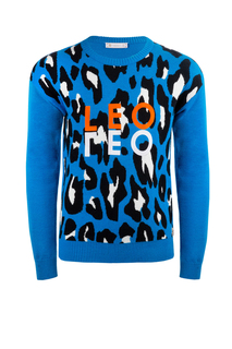 Вязаный джемпер с леопардовым жаккардовым рисунком и короткими рукавами. Круглая горловина связана чёрной резинкой, манжеты и низ изделия связаны резинкой в контрастную полоску.