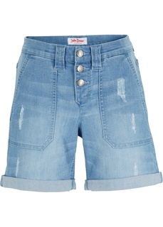 Эти джинсовые шорты-стретч от John Baner привлекают эффектными деталями. Длину закатывающихся брючин можно фиксировать ригелями с пуговицами у боковых швов. Выбеленные шорты выполнены в классическом дизайне 5 карманов, поэтому они идеальны для комбиниро...