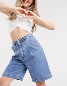 Джинсовые шорты Monki Из подборки экологичной моды Высокая талия Шлёвки для ремня Четыре кармана Со складками Крой длиннее стандартного Классическая посадка на талии Размер соответствует указанному на этикетке