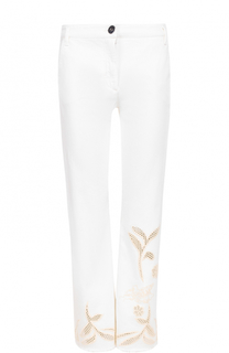 Прямые укороченные джинсы на высокой посадке от Isabel Marant. Модель сшита из плотного денима белого цвета с круглыми орнаментальными вставками в технике ришелье. Состав: 100% хлопок