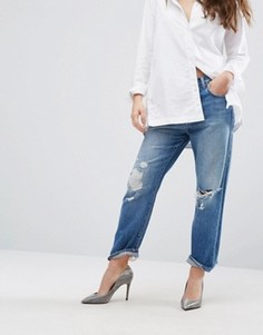 Облегающие джинсы клеш синего цвета вошли в коллекцию сезона весна-лето 2016 года. Мастера бренда выполнили модель с классической посадкой на талии из плотного и эластичного хлопка с декоративными потертостями.