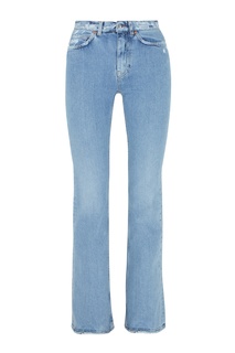 Расклешенные джинсы из светло-голубого денима с потертостями. Модель на средней посадке дополнена классическими пятью карманами. Состав: 100% хлопок