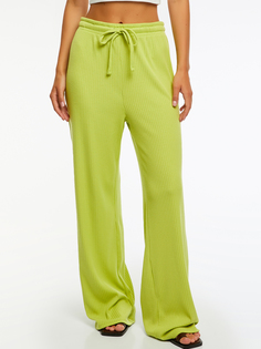Удобные брюки на эластичном поясе с завязками. Модель широкого кроя без карманов не стесняет движений, ткань на основе вискозы приятна на ощупь, а удобный пояс на кулиске гарантирует желаемую посадку на талии или бедрах. Рельефный узор в виде рубчика по...
