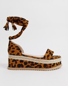 Эспадрильи Raid Для любителей звериных принтов Шнуровка с застежкой в области щиколотки Открытый носок Плетеная межподошва Плоская подошва Литая подошва