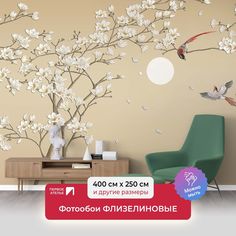 Вы искали изюминку для своего интерьера? Вы её нашли! Фотообои флизелиновые встык "Цветы сакуры и птицы" - современный дизайн и стильный декор для дома и интерьера квартиры. Обои виниловые с эффектным и эстетичным изображением птиц и ветки дерева с цвет...