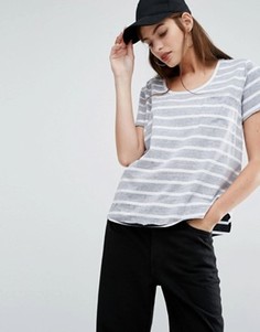 Футболка ASOS DESIGN Из коллекции экологичной моды V-образный вырез Заниженная линия плеч Короткие рукава Узор в виде полосок Модель в стиле oversize Свободная модель