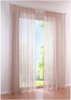 Прозрачная гардина из однотонной, легко ниспадающей вуали. Крепление на гофрированную тесьму, петли или люверсы. С утяжеляющим кантом понизу. Легкая в уходе, подлежит стирке.