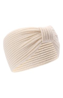 Кремовая повязка из микса шерсти и альпаки на голову с логотипом от Moncler(Монклер). Ребристая фактура, бляшка с логотипом спереди.
