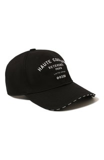 Бейсболка с вышивкой от Vetements. Твердые поля, вышитый дизайн, вышитый логотип спереди, прошитые панели и регулируемый размер. Цвет: черный.