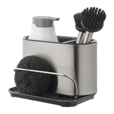 Органайзер Atle позволяет компактно разместить средство для мытья посуды, губку, щетку и другие предметы для уборки кухни непосредственно на мойке или на столешнице. Изделие выполнено из прочного и устойчивого к износу АБС-пластика и нержавеющей стали. ...