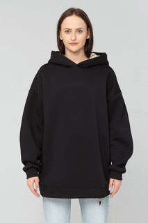 OVERSIZE hoodie black - Эксклюзивный свободный оверсайз с качественной фурнитурой, толстовка с рожками в капюшоне.Оверсайз толстовка укомплектована отличной фурнитурой - широкими люверсами и канатным шнуром «sleeve» с металлическим концевиком.Внутренняя...