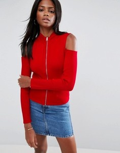 Cardigan by ASOS Collection, Вязка в рубчик, Открытые плечи, Высокий ворот, Молния спереди, Классический крой, точное соответствие размеру, Машинная стирка, 95% вискоза, 5% эластан, Размер на модели: UK 8/EU 36/US 4. ОБ ASOS COLLECTION Score a wardrobe ...