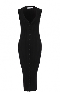 Черный кардиган с широкими завязками от Givenchy(Живанши). V-образная горловина в рубчик, застежка на пуговицах спереди, длинные рукава реглан, ребристая фактура, удлиненная модель.