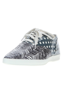 плотная ткань, эффект ламинирования, без аппликаций, двухцветный узор, шнуровка, скругленный носок, резиновая подошва, без каблука, маленький размер