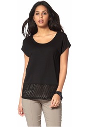 Женская кофточка, представленная модным брендом Chillytime, удивит Вас нетривиальным дизайном. Базовая, на первый взгляд, футболка лаконичного цвета с матовым блеском и короткими рукавами декорирована пикантной вставкой из прозрачной сеточки по нижнему ...