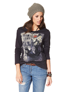 Вам хочется избежать сложной отделки, но выглядеть при этом очень эффектно? Отличное решение - кофточка от Arizona с крупным принтом в урбанистическом стиле. Фотопринт украшен винтажным "потертым" эффектом и блестящим покрытием - стильно! Завершающим шт...