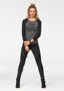 Футболка с длинными рукавами. Стритстайл-образ трудно представить без непринужденного лонгслива. Модель от бренда AJC привлекает контрастными длинными рукавами реглан и, конечно же, позитивным принтом-надписью на фоне тонких полосок. Эластичный и очень ...