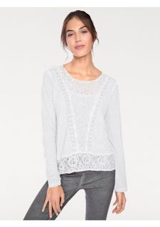 Нежная прозрачная кофточка с изысканным ажурным узором позволит Вам получить волнующий образ! 2 различных кружевных мотива и очаровательные рюши составляют гармоничный тандем. Глубокий круглый вырез с кантом, длинные рукава, комфортный материал стрейч и...