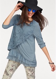 Привлекательно: кофточка с пикантно открытыми плечами и эффектом запаха под глубоким V-образным декольте. Нежно прилегающий, узкий крой с рукавами 3/4 отлично сидит благодаря вискозе-стрейч (джерси). По бокам стильно присборено. Рифмуется с джинсами и б...