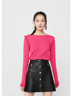 Тонкий трикотаж, декоративные воланы, круглый вырез горловины, длинные рукава, края связаны резинкой. Джемпер с воланами.