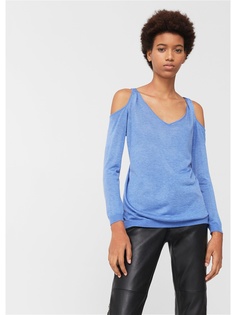 Открытые плечи, тонкий трикотаж, v-образный вырез горловины, длинные рукава, края связаны резинкой.
