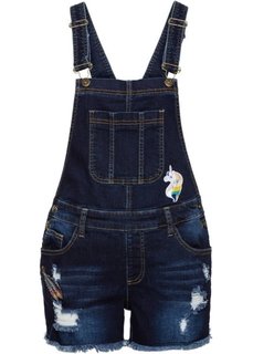 Комбинезон с имитацией поношенности и стильными нашивками спереди и сзади. Нижний край с бахромой. Длина ок. 7,5 см (разм. 38).