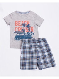 Комплект одежды для мальчиков: футболка, шорты. Цвет: серый меланж, красный. Сезон: круглогодичный. Состав: хлопок 100%
