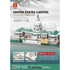 Конструктор Wange Архитектура мира , Америка, Вашингтон, Капитолий, 1074 шт.Капитолий в Вашингтоне — внушительное сооружение с огромным белым куполом, объединяющим Сенат в северном крыле с Палатой представителей в южном крыле. Само здание поражает мощью...