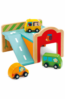 Игрушечный деревянный конструктор Гараж от французского производителя игрушек Djeco – яркая и интересная игрушка, которая приведет в восторг каждого мальчугана. В наборе малыш найдет деревянный двухуровневый паркинг с гаражом, парковкой и горочкой-съ