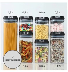 Контейнеры с крышкой - 7шт.Набор контейнеров для хранения сыпучих продуктов украсит интерьер любой кухни, сэкономив при этом достаточно места - прямоугольная форма и модульная конструкция позволяют составлять контейнеры один на другой. Контейнеры выполн...