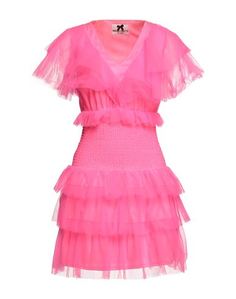 тюль, синтетическое джерси, рюши, оборки, одноцветное изделие, v-образный вырез, короткие рукава, внутри на полуподкладке, без карманов, низ с оборками
