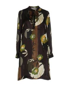 плотная ткань, логотип, разноцветный узор, воротник-стойка, короткие рукава, один карман, без подкладки, застежка спереди, пуговицы, платье-рубашка