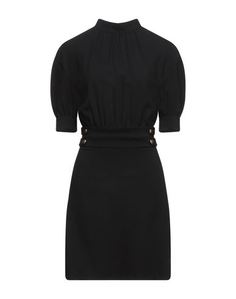 креп, одноцветное изделие, воротник-стойка, короткие рукава, присборенная ткань, петлицы, без карманов, разрез сзади, внутри на подкладке, застежка сзади, молния, стрейч, платье