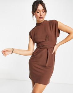 Платье мини ASOS DESIGN Если сомневаетесь, наденьте эту модель Воротник-стойка Со складками Застежка на молнию и пуговицы сзади Узкий крой