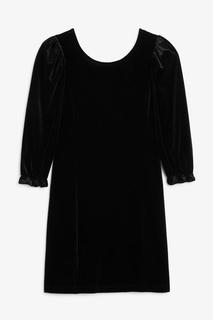 Платье мини из бархата с объемными рукавами три четверти и глубоким круглым вырезом на спине.Классический кройДлина миниКруглый вырез спередиГлубокий круглый вырез на спинеОбъемные рукаваОбхват груди для размера S — 93 см, длина по спинке — 87 см.
