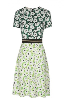 Разноцветное платье с принтом от Stella McCartney(Стелла Маккартни). Круглый вырез, короткие рукава, потайная застежка на молнии сзади, приталенный крой, юбка А-образного силуэта, длина по колено.