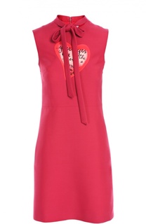 Приталенное розовое мини-платье без рукавов вошло в коллекцию сезона осень-зима 2015 года. Для создания модели дизайнеры бренда, основанного Валентино Гаравани, использовали мягкую шерсть. Лиф украшен аппликацией в форме сердца. Горловина дополнена лент...