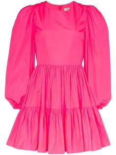 Ярусное платье мини из тафты от Valentino (Валентино). Круглый вырез и многоуровневый дизайн.