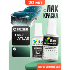 Автоэмаль с кисточкой для подкраски сколов и царапин автомобиля GEELY код цвета I33 - SRUPERSONIC GREEN (базовая) с акриловым однокомпонентным автомобильным лаком, в виде штрих-корректоров 20 мл. Представленная краска обладает высокой укрывной способнос...