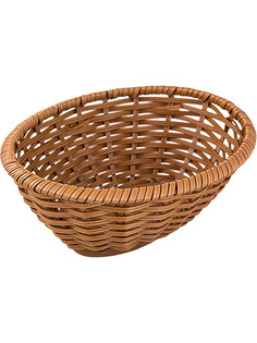 Оригинальная плетеная корзинка овальной формы, выполнена из пластика, напоминающего фактуру дерева. Корзинка прекрасно подойдет для вашей кухни. Она предназначена для красивой сервировки хлебобулочных изделий Состав: пластик